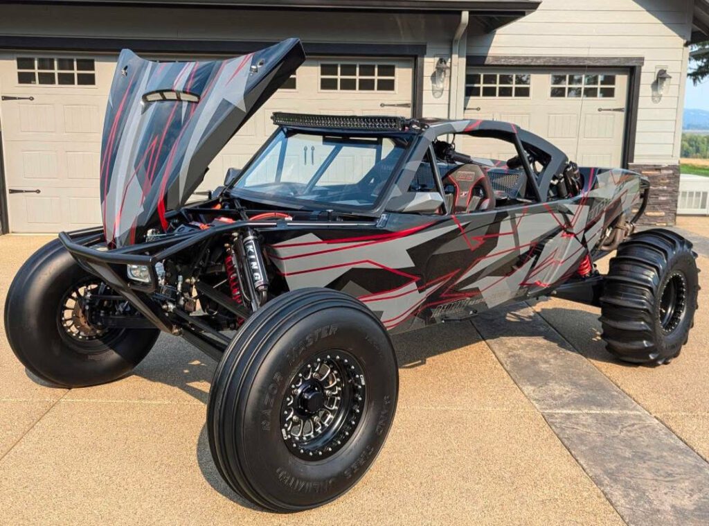 Original Owner, 2021 Tatum TRX2, built new and completed July of 2021. on race gas, 4 boost settings, auto adjust sensor for different elevations, Motec M130 with 12″ Display screen, PDM, 15 position Keypad, and Albins 5-speed sequential transmission. Upgrades include Tilt hood, Tatum Wheels, 35 Gallon Fuel Cell, PCI Fresh Air, PCI Trax Radio, Fire Suppression, 35 Spline Race Prep CV’s & Axels, Black on Black King Shock Package with color matched Eibach Springs, tie down hooks for securing on the floor or belly lift, and rear limit straps. Upgraded CR Designs multi colored custom paint and completely protected by PPF clear bra.